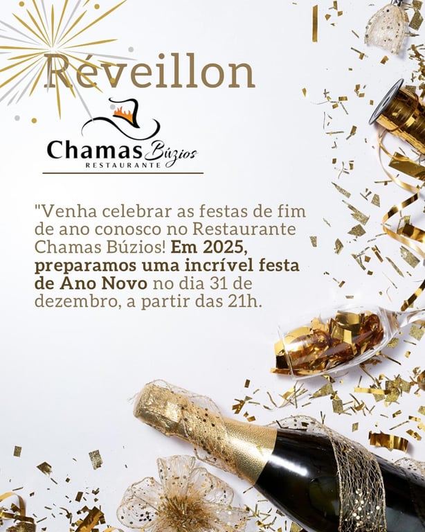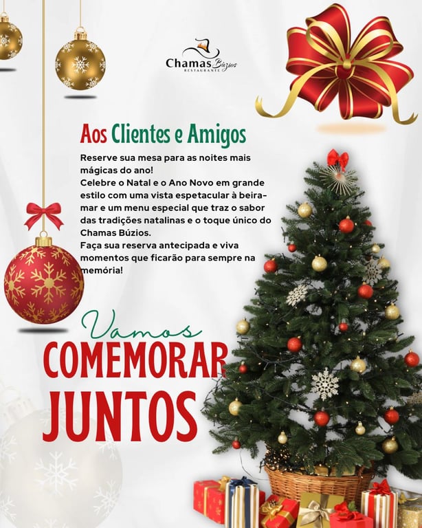 ✨ Dica de ouro: não deixe para a última hora! As reservas para o Natal e Réveillon no Chamas Búzios Restaurante se esgotam rapidamente, já que o local é um dos mais procurados para as festas de fim de ano em Búzios.